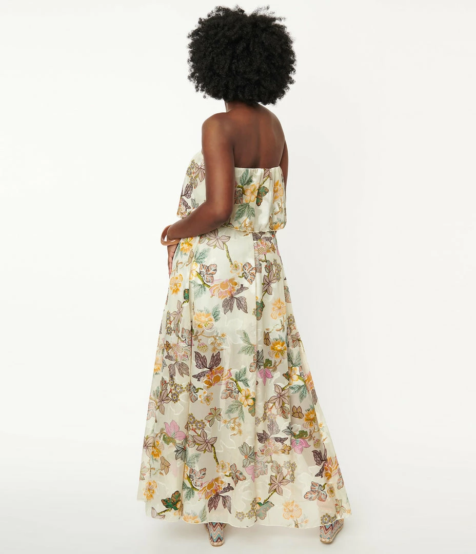 Best Pirce ๐ Aakaa Champagne & Multicolor Floral Print Strapless Maxi ๐ Dress Sale โจ