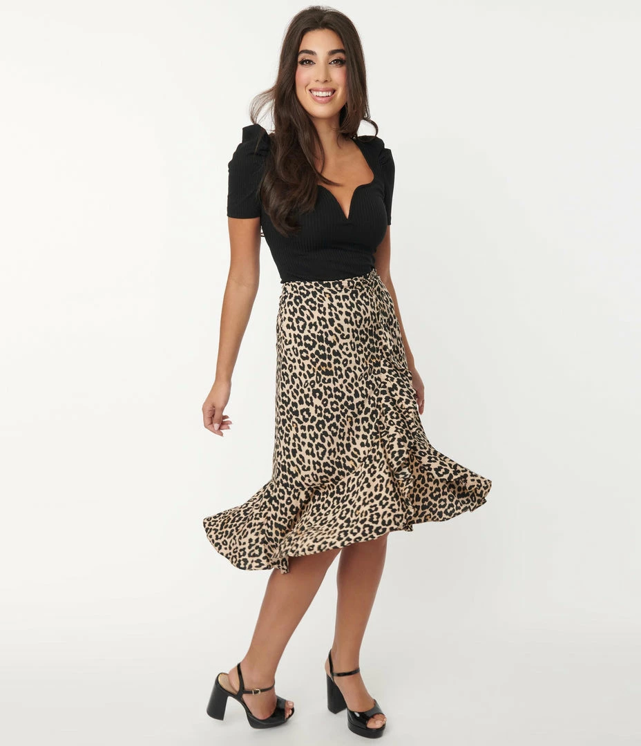 Give in to your animal instincts, darling! This lightweight skirt boasts a sultry leopard print throughout the woven fabric. The waistline is cinched with the back zipper to give you that classic hourglass shape, while the midi length high low skirt features ruffle detailing to highlight your gams!