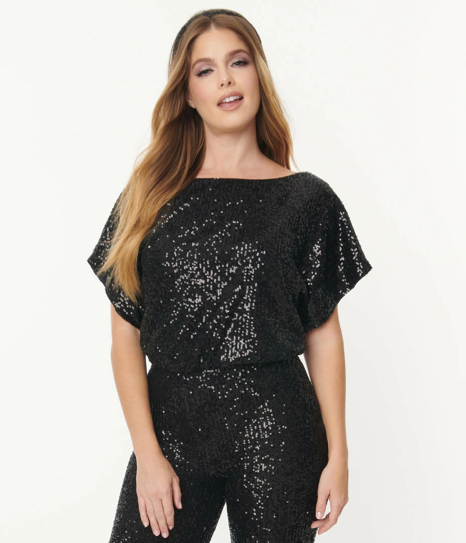 Promo 🥰 Aakaa Retro Black Sequin Crop Top 😍