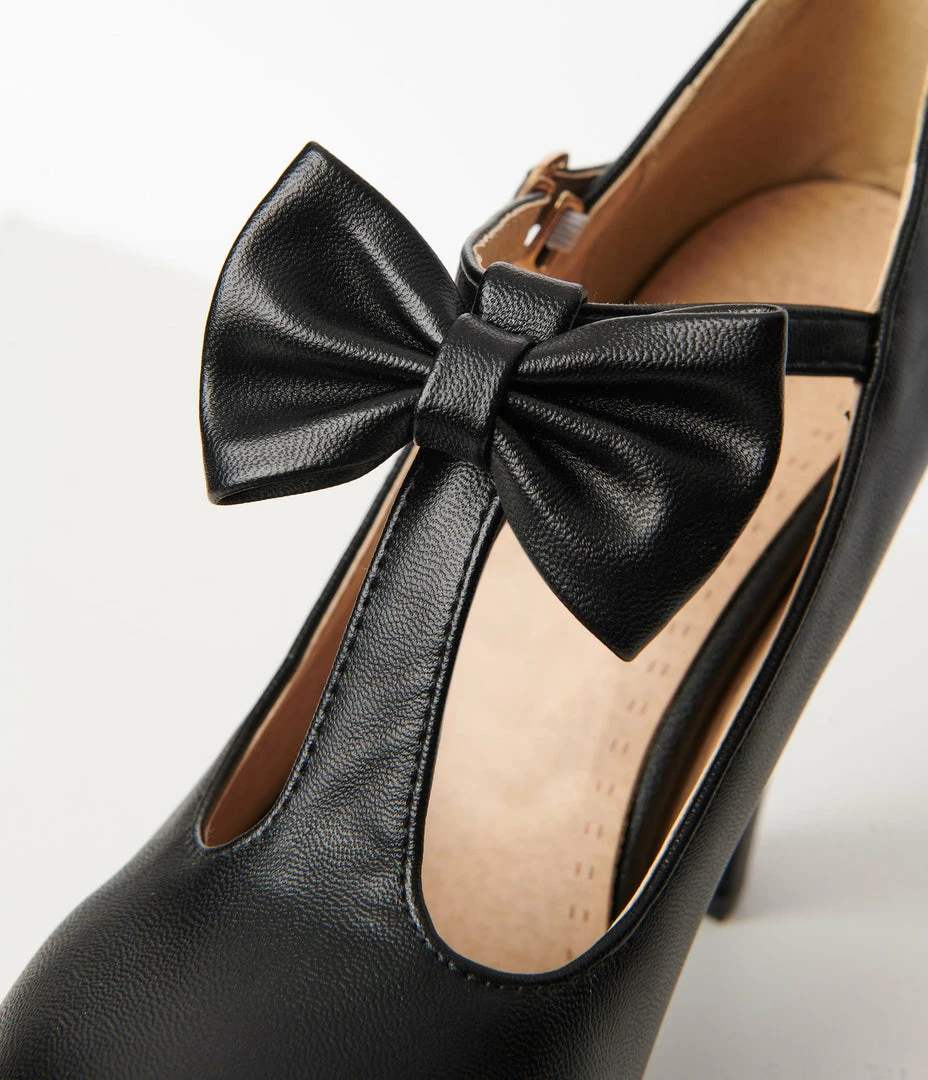New ๐ฅ Atixo GmbH (Belsira) (Faire) ๐ Shoes Retro Black Bow T-Strap Platform Pumps โค๏ธ