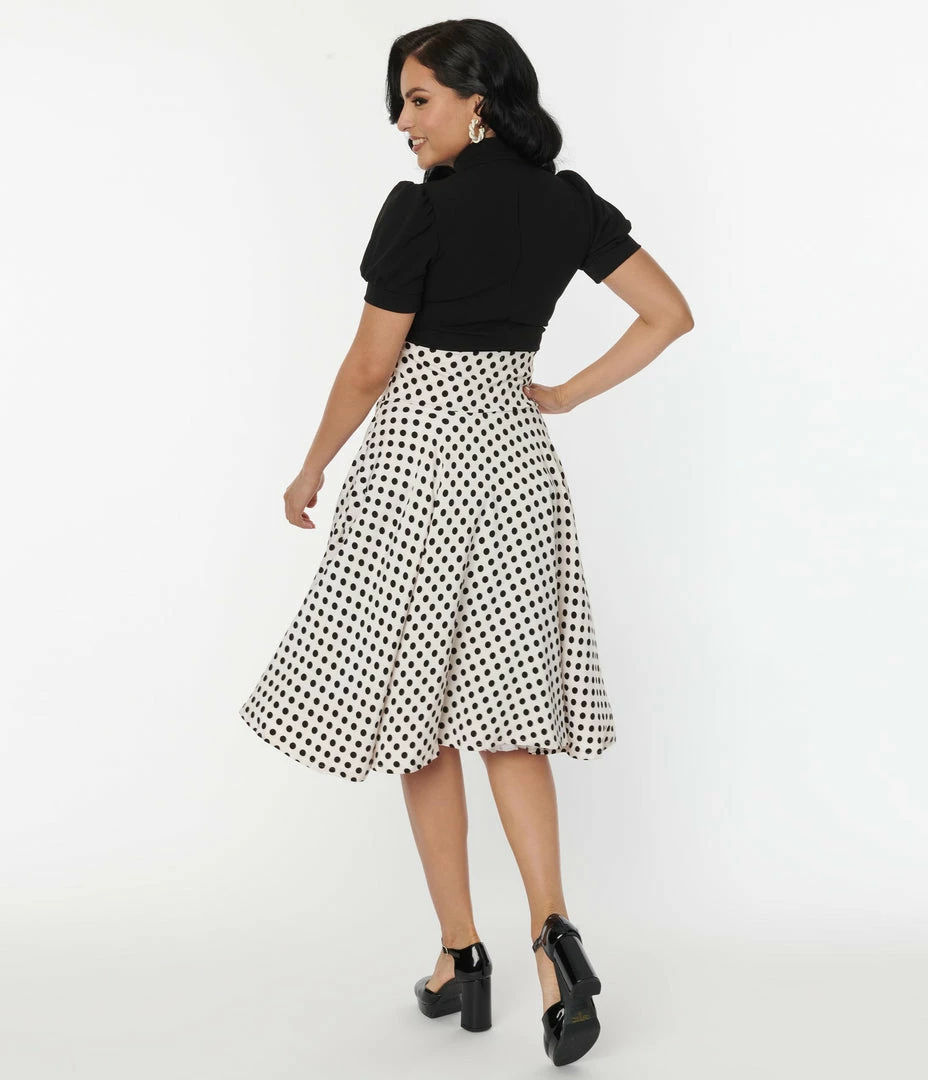 Promo ๐งจ Atixo GmbH (Belsira) (Faire) White & Black Dot High Waisted Swing ๐ Skirt Clothing ๐คฉ