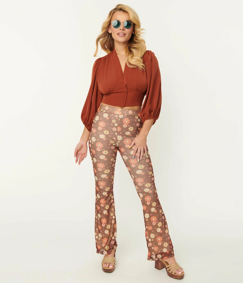 Cheap 🔔 Bailey Rose Brown & Multicolor Floral Mesh Flare Pants Sale 😀