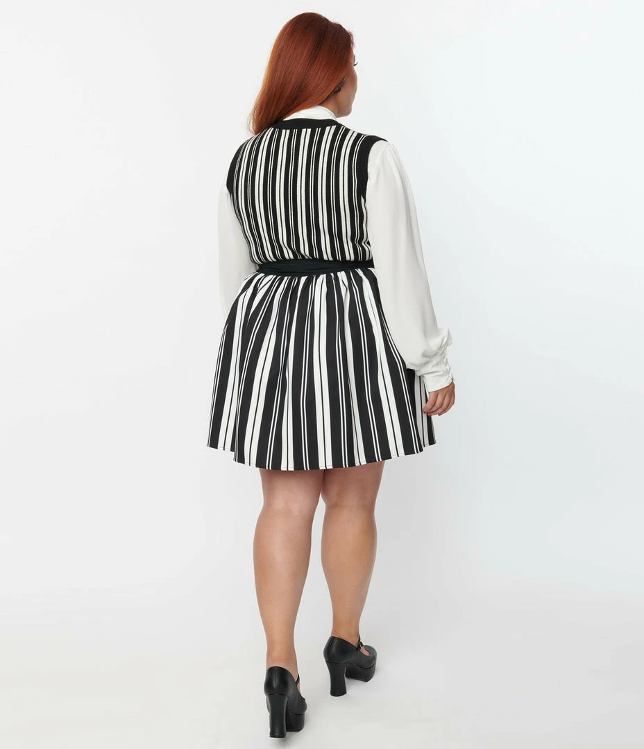 Cheap ๐งจ Beetlejuice X Unique Vintage Plus Size Black & White Striped Flare ๐ Skirt ๐