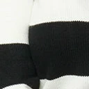 Crafted in a soft plus size sweater knit with black and white stripes. The long sleeve cardigan boasts the words ‘ Strange and Unusual’ embroidered in green on the back.