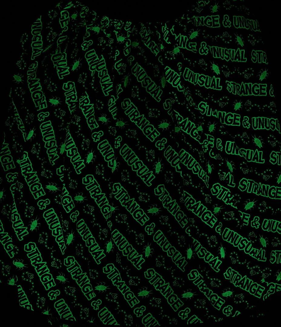 A retro plus size midi skirt that sends chills up your spine, in collaboration with Beetlejuice, crafted in black mesh that dances with the font ‘Strange & Unusual’, bugs, and striped worms in gray, over a black lining. Complete with an elastic banded waist.