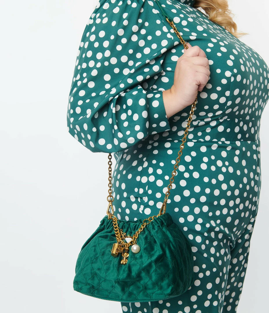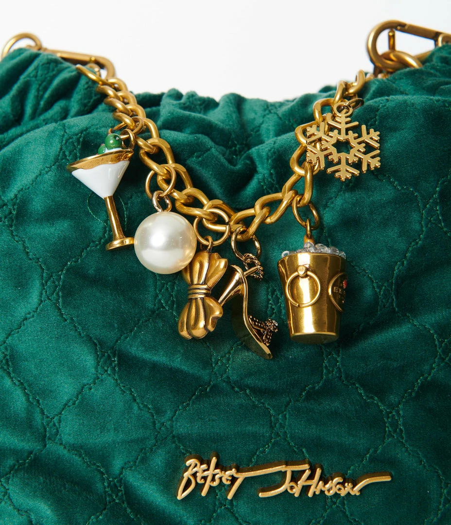 Top 10 ๐ Betsey Johnson Emerald Green Quilted Bucket Bag With Charm Bracelet Accessories ๐