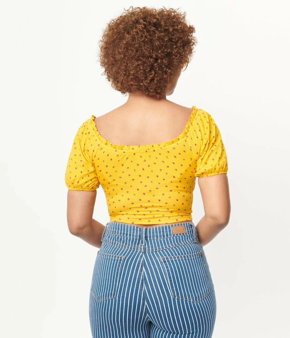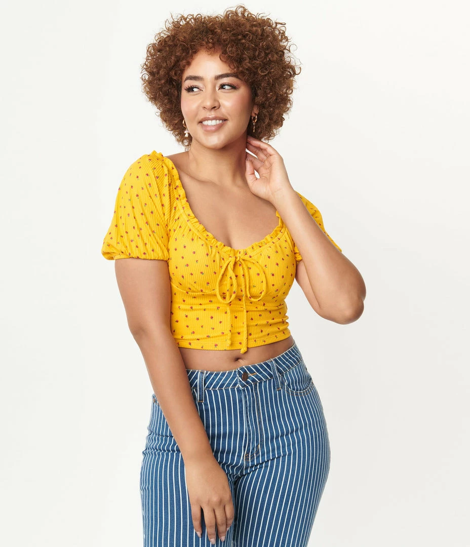 Cheapest 🌟 CHOCOLATE USA Mustard Ditsy Floral Ruffle Crop Top 🔔