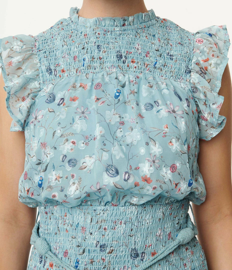 Buy ๐ Clothing Company Blue & Floral Print Smocked Flare ๐ Dress Sale ๐งจ