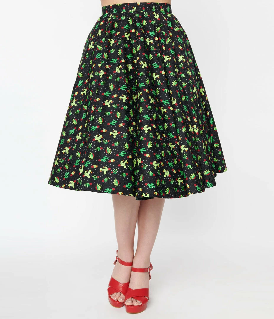 Buy โ๏ธ Clothing Magnolia Place Black & Pin Dot Cacti Print Sally Swing ๐ Skirt ๐