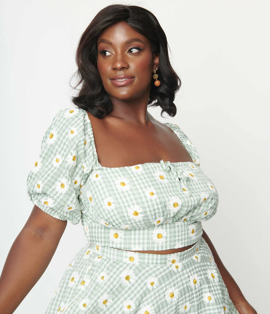 Hot Sale 🎉 Clothing Magnolia Place Plus Size Green Gingham Daisy Crop Top ⌛