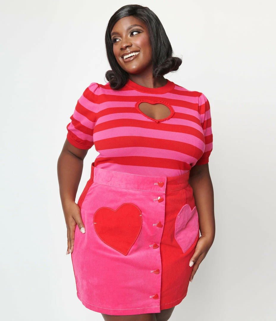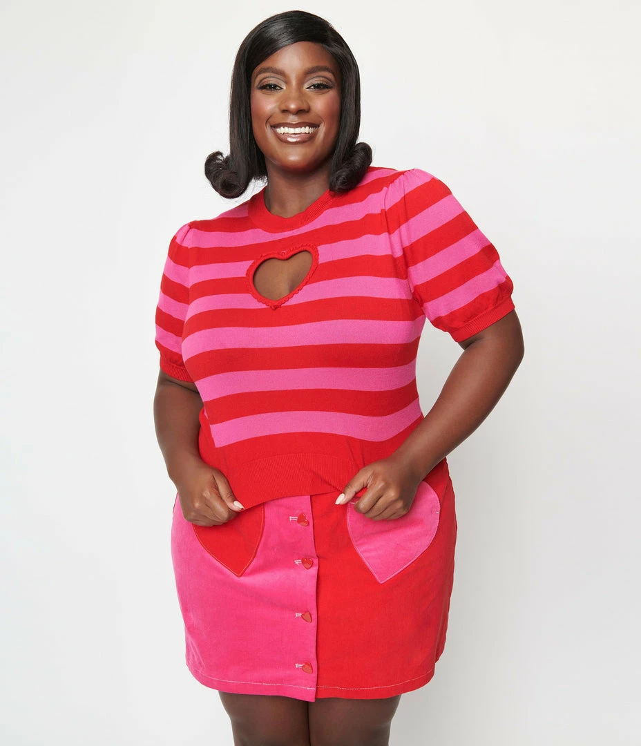 Best reviews of ๐ฅฐ Clothing Smak Parlour Plus Size Red & Pink Stripe Keyhole Heart Sweater ๐ฅ