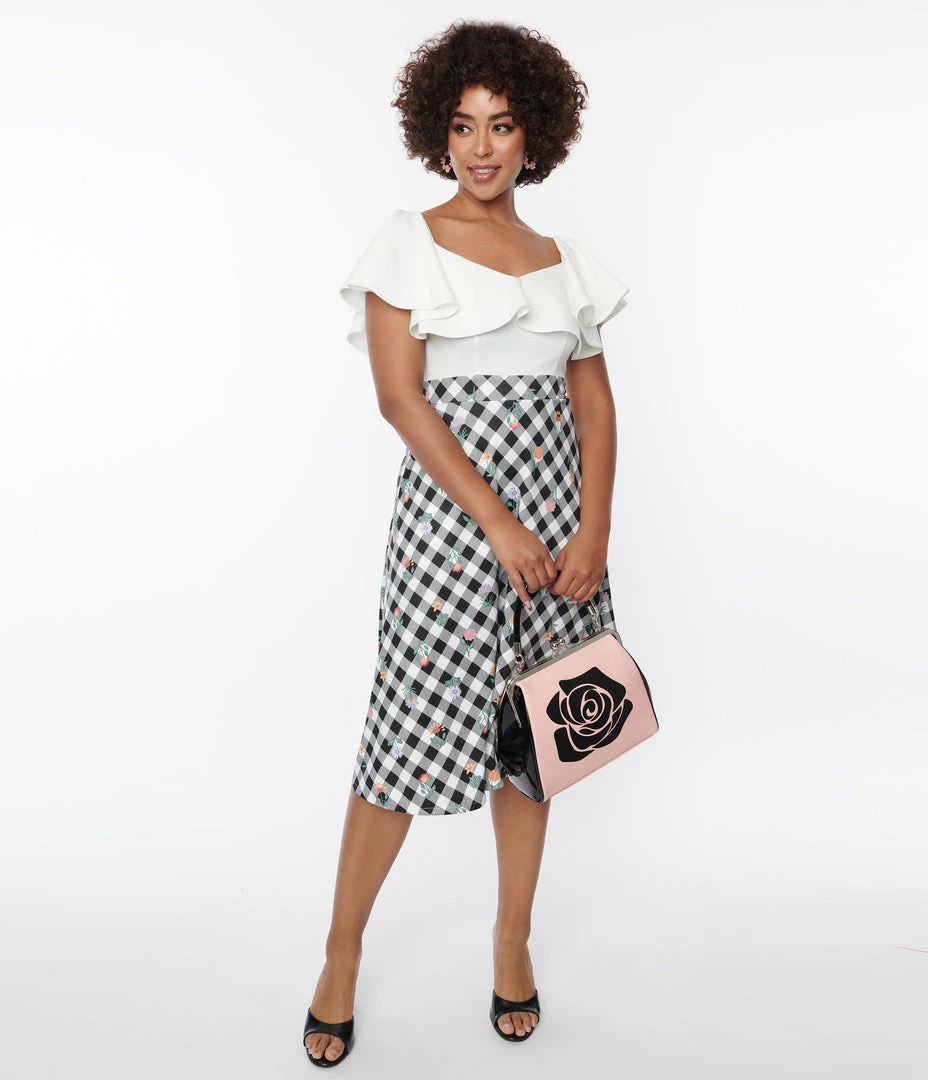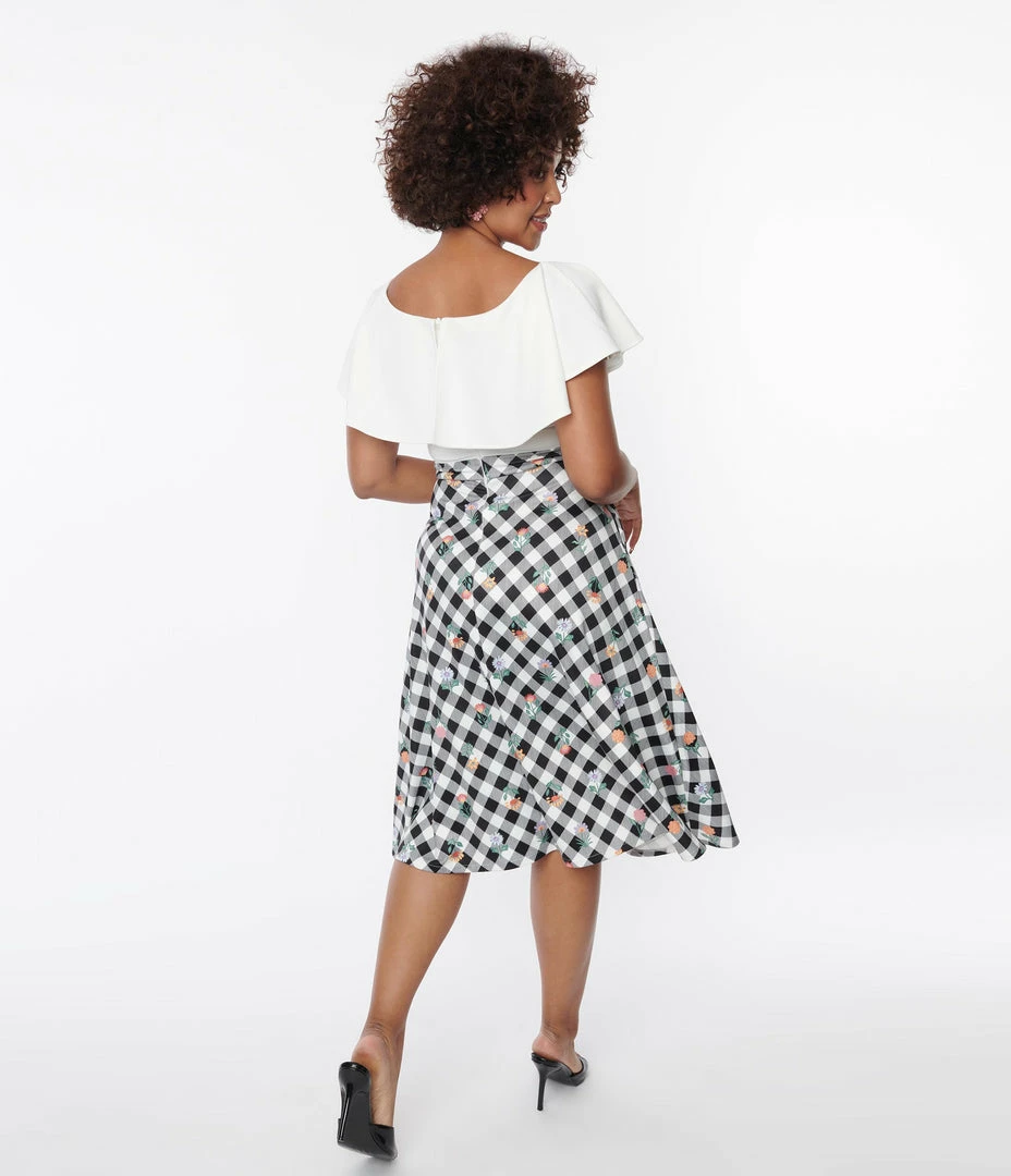 Hot Sale ๐ฏ Clothing Unique Vintage Black & White Gingham Floral Swing ๐ Dress โ๏ธ