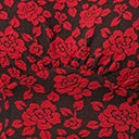 This elegant flare dress is crafted in a black double knit that features burgundy red flocked florals throughout. Complete with a back zipper and elastic cuffs.
