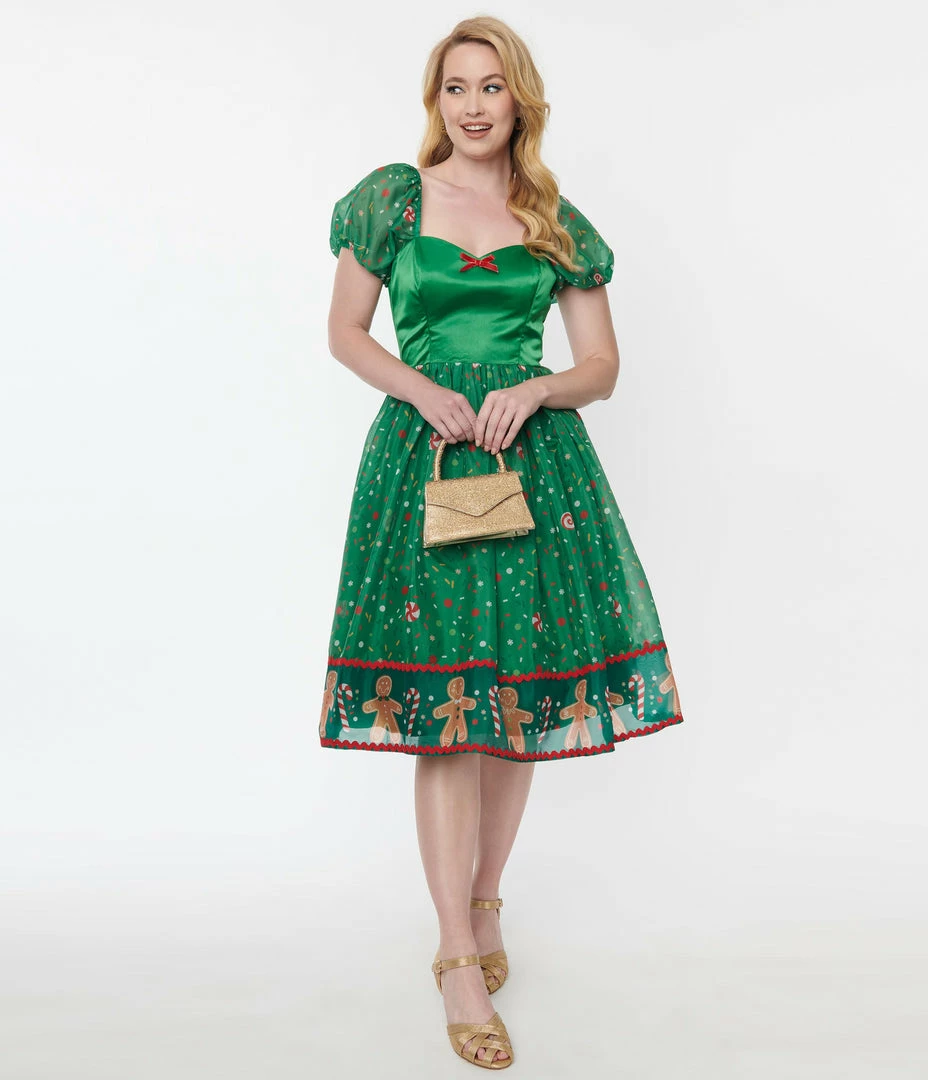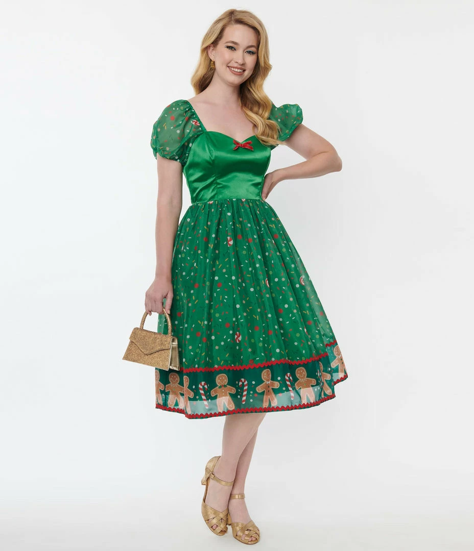 Cheapest ๐คฉ Clothing Unique Vintage Green Gingerbread Sprinkles Swing ๐ Dress โญ