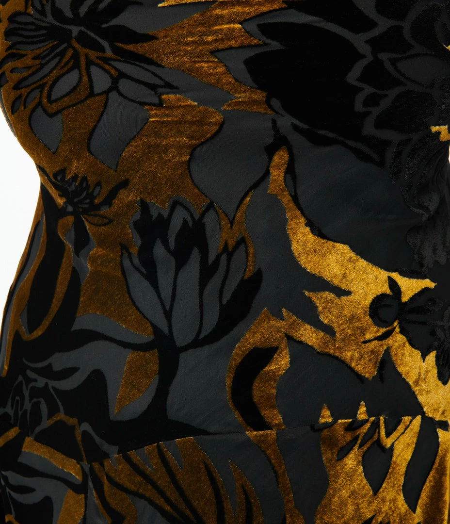 Cheapest 🛒 Clothing Unique Vintage Plus Size 1920s Black & Gold Velvet Floral Burnout Hemingway Flapper 👗 Dress 💯