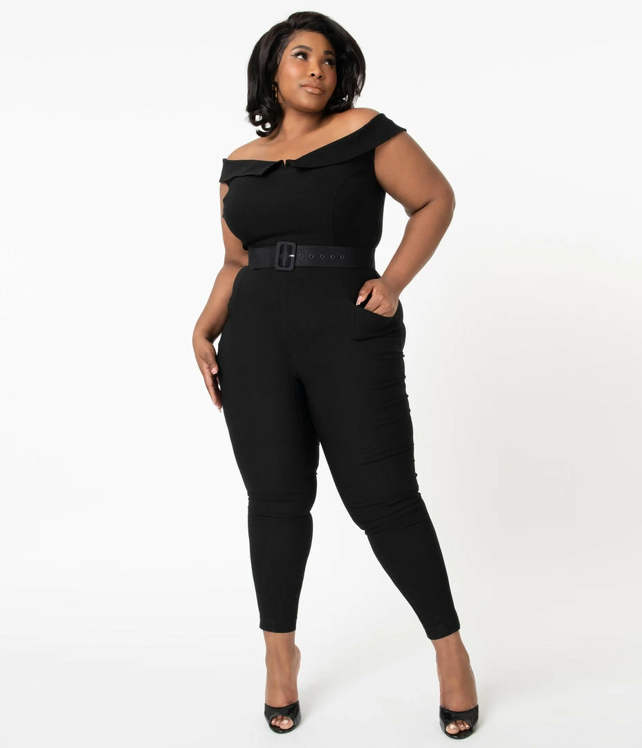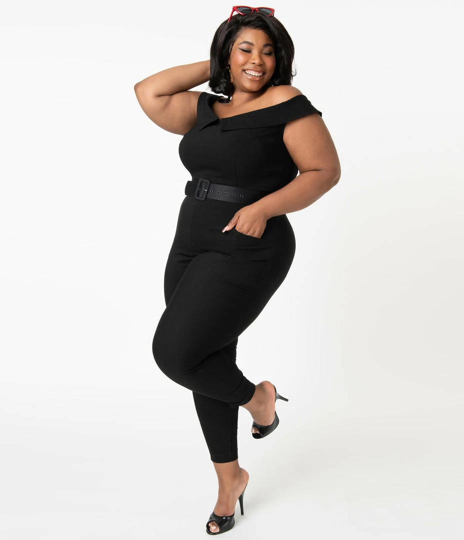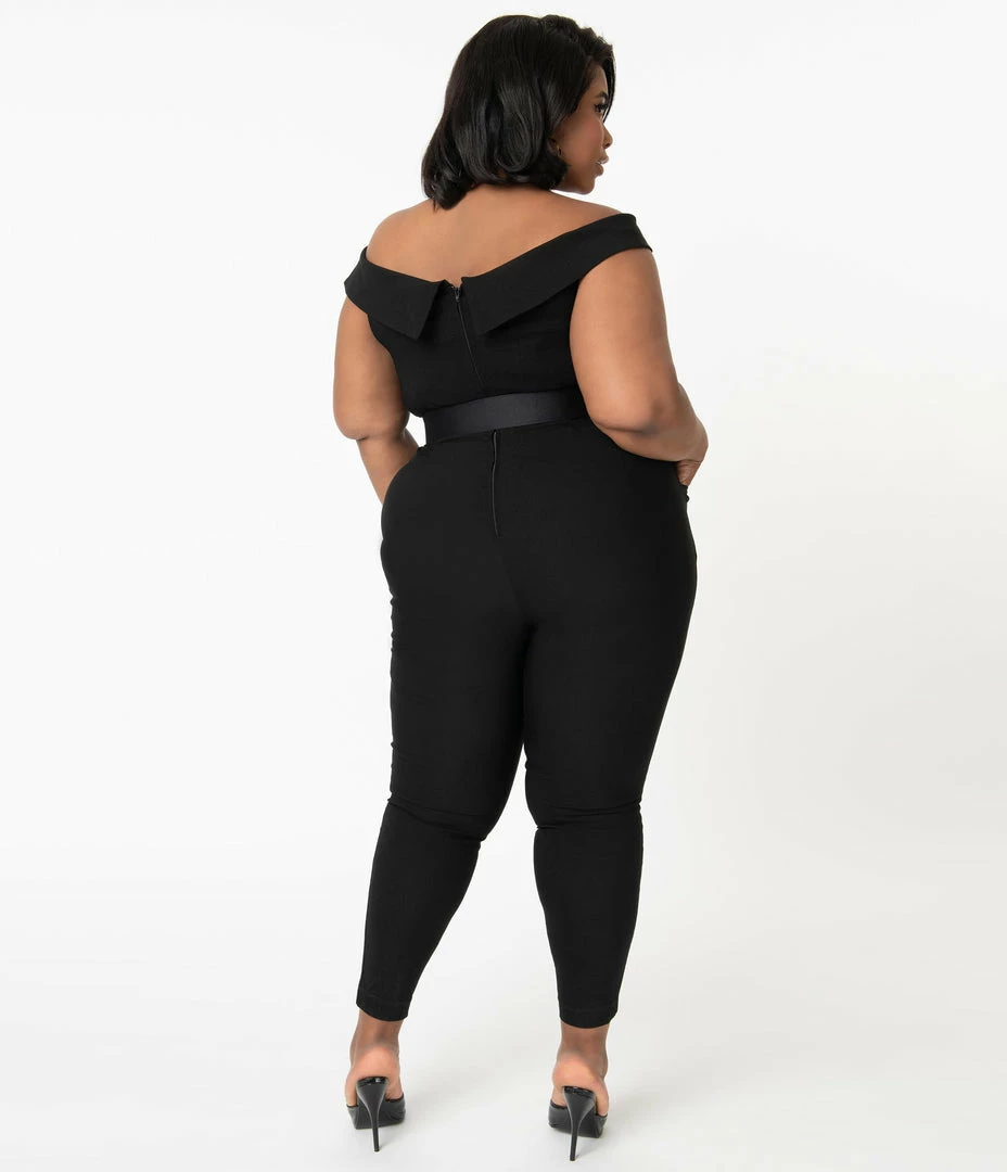Best Pirce 🥰 Clothing Unique Vintage Plus Size 1950s Black Off Shoulder Gillian Jumpsuit 👏
