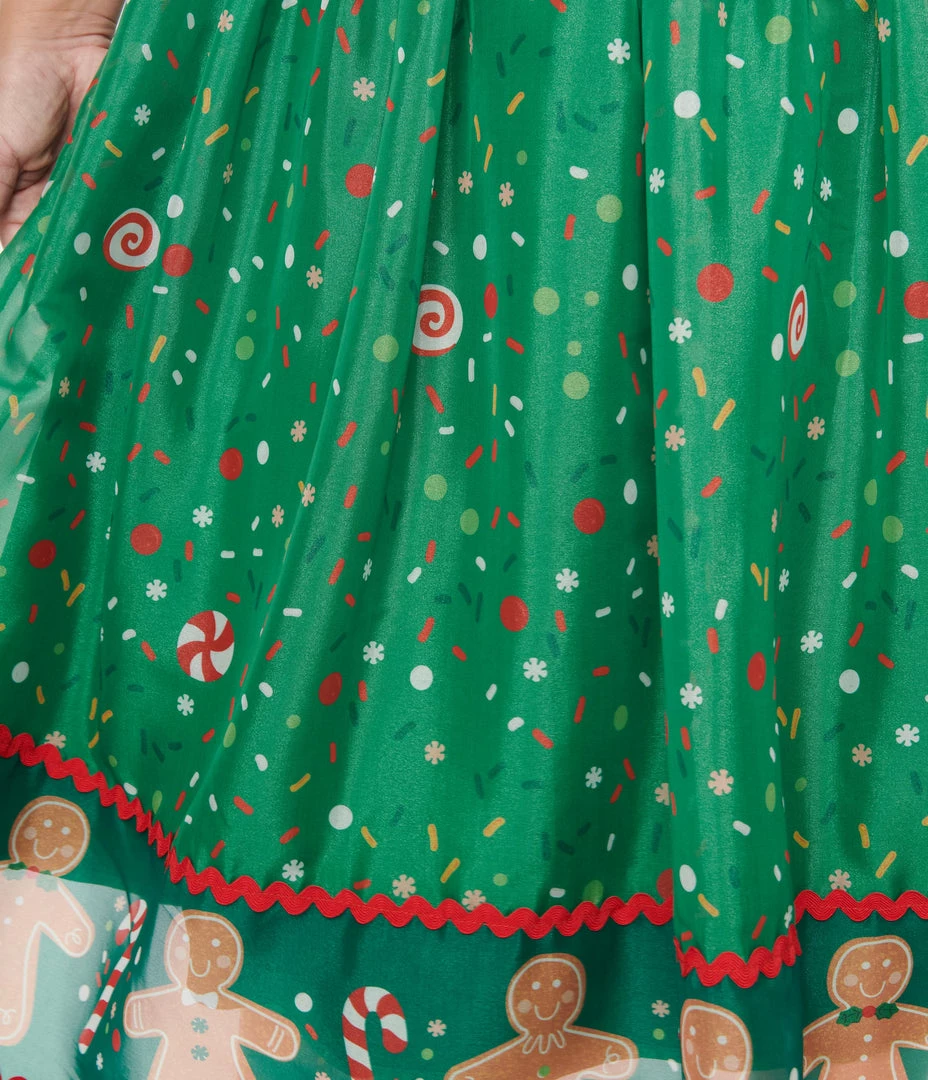 Buy ๐ Clothing Unique Vintage Plus Size Green Gingerbread Sprinkles Swing ๐ Dress ๐