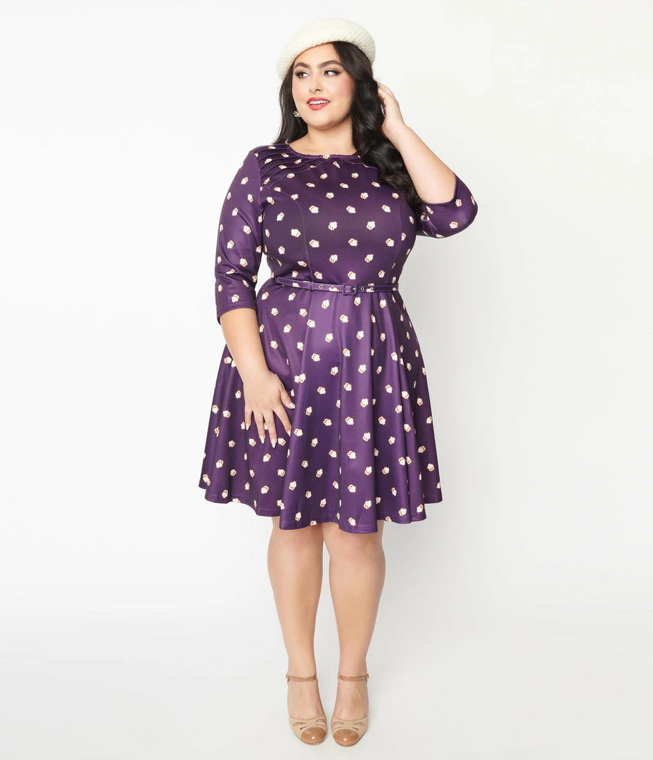Flash Sale ๐ Clothing Unique Vintage Plus Size Purple Owls Fit & Flare ๐ Dress โ