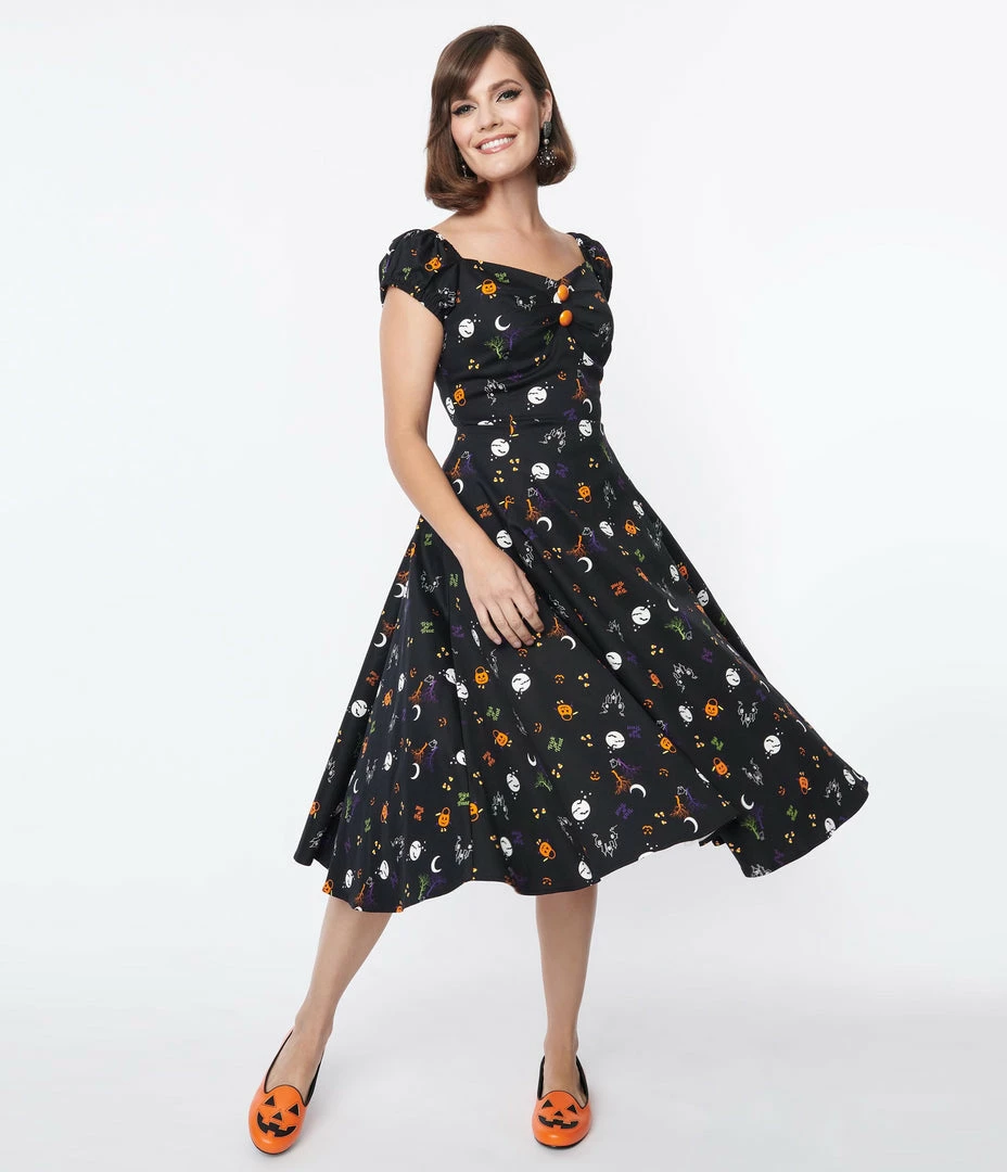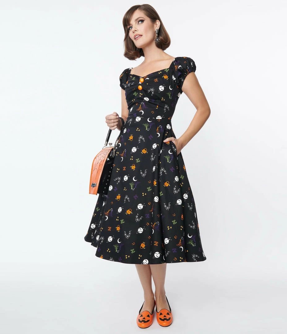 Best Sale 🔔 Collectif Black All Hallows Eve Dolores Swing 👗 Dress Sale ✨