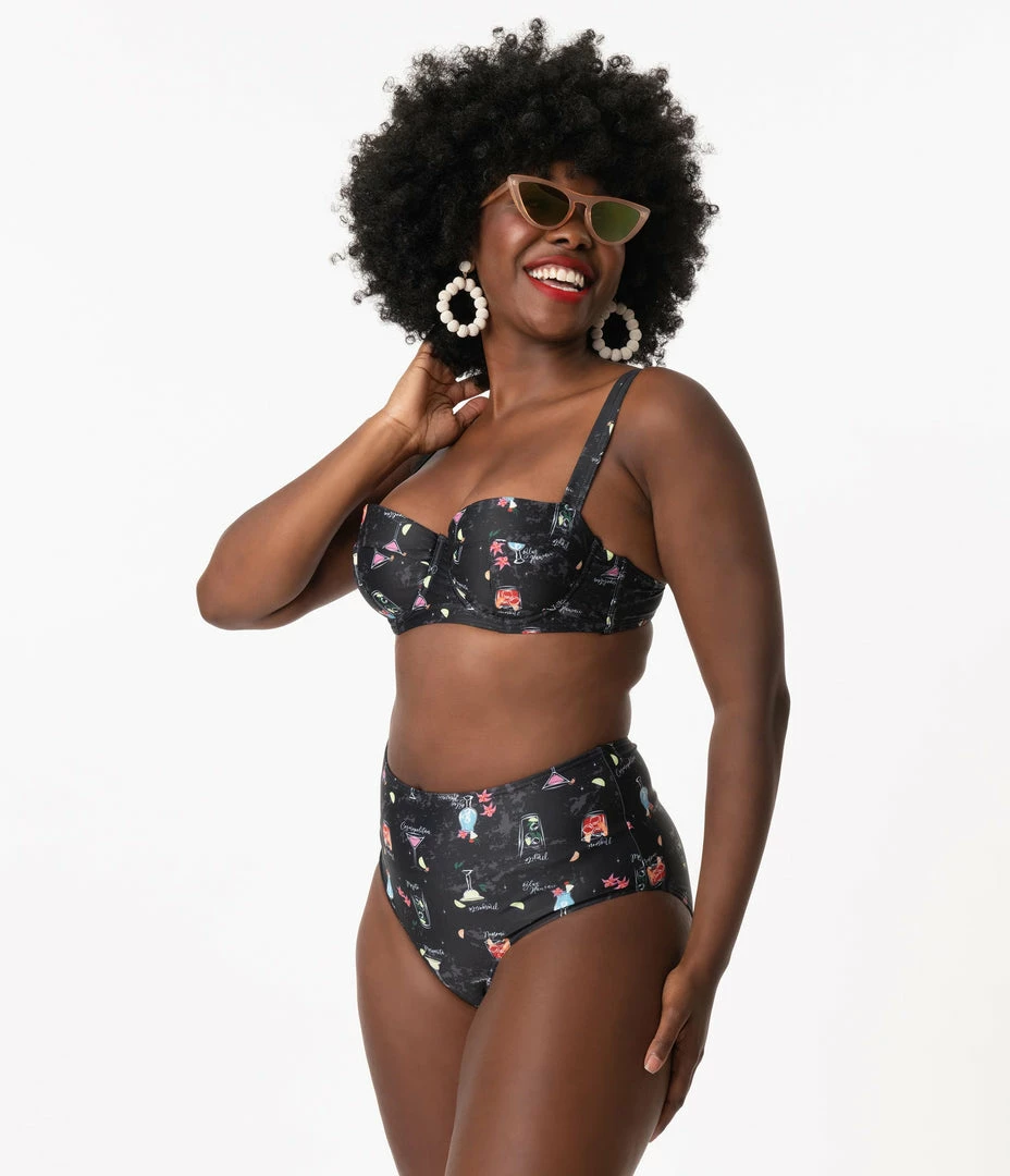 Take a sip on the beach with this sweet balcony swim top from Collectif. Boasting a beautiful print of colorful cocktails throughout a black backdrop, the molded padding, side boning, and underwire provides comfortable structure while the adjustable straps lend a flattering fit. Secured with a back hook for a mouth-watering style!