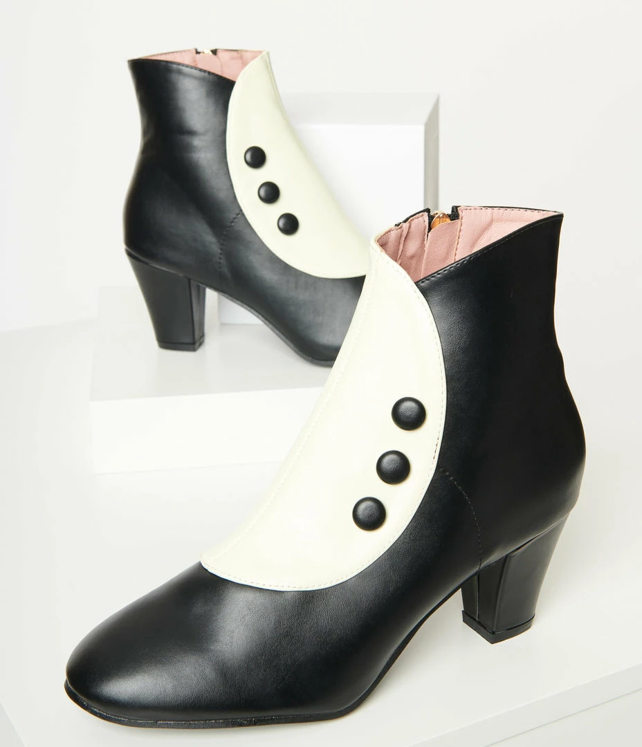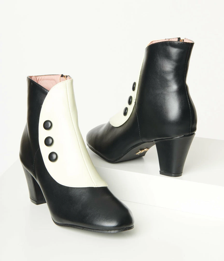 Best reviews of ❤️ Collectif Black & Cream Spats Erice Booties 👟 Shoes ⭐