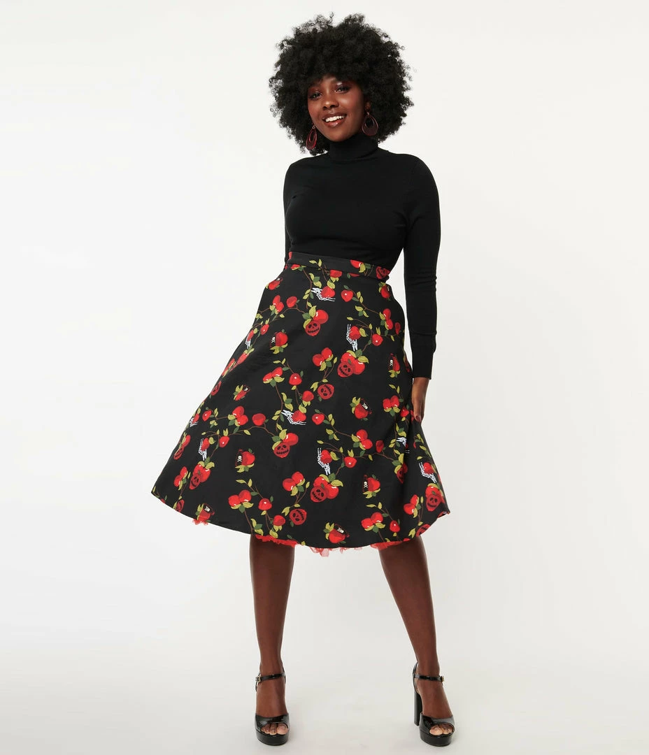 Best Sale ⭐ Collectif Black & Red Deathly Apples Cassie Swing 👗 Skirt Sale ✔️