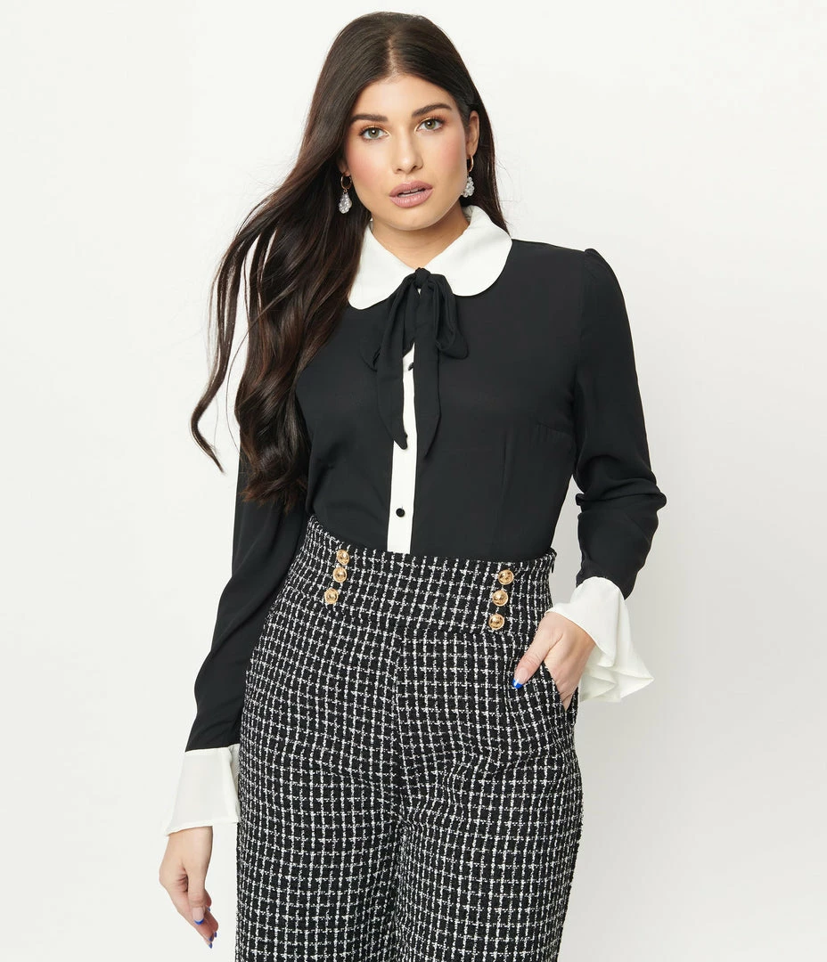 Budget 🛒 Collectif Black & White Collar Prudence Blouse Sale ⌛