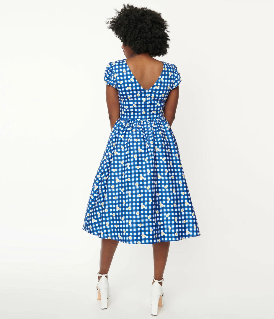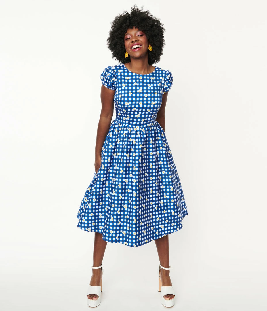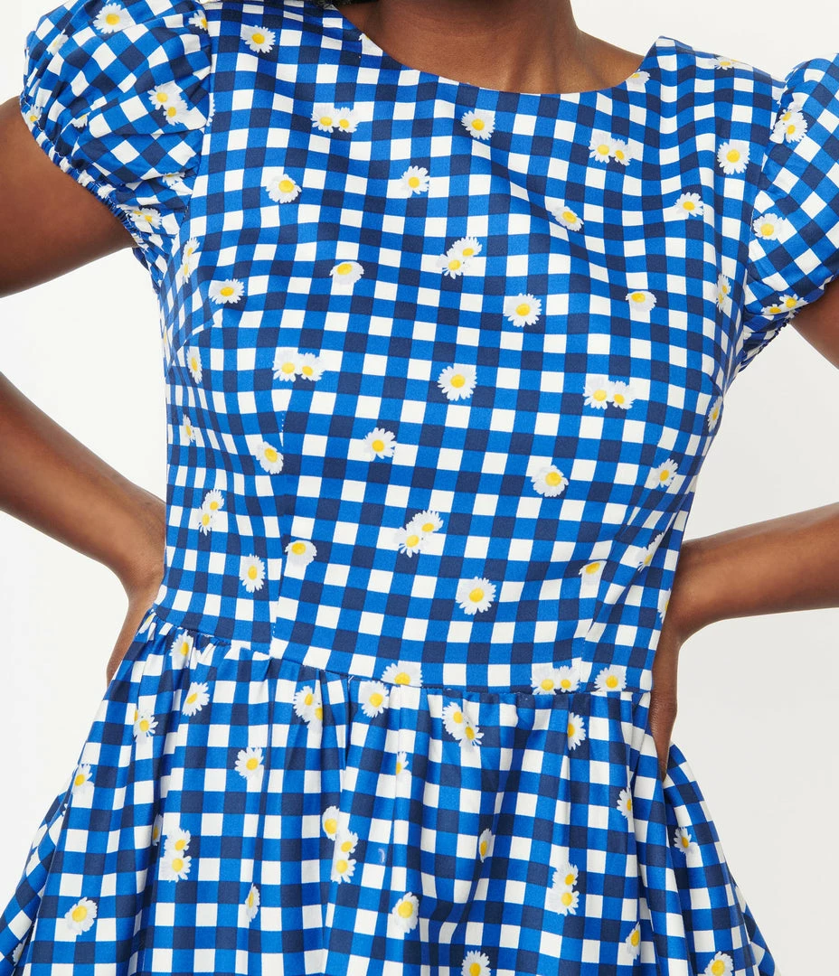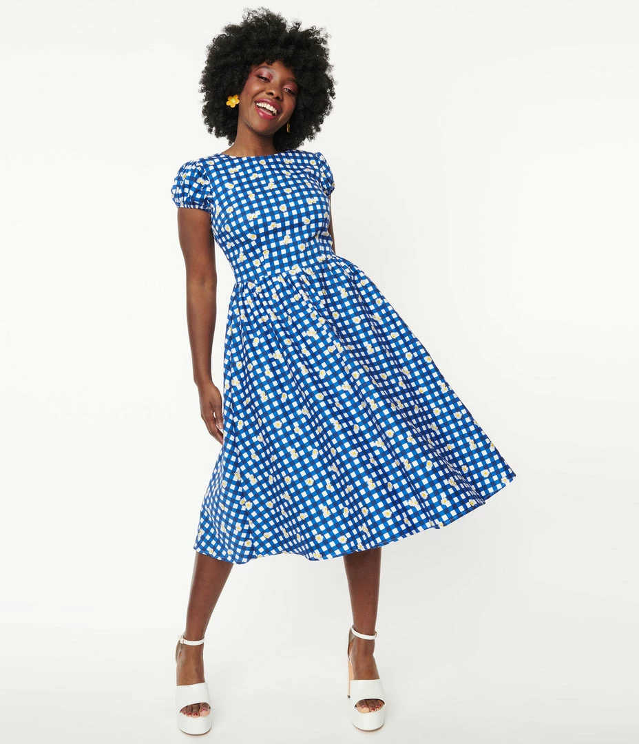 Coupon ๐ Collectif Blue Gingham & White Daisy Demira Swing ๐ Dress ๐