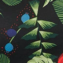 This tropical swing dress is crafted in a cotton blend that dances with parrots and green tropical leaves throughout a black backdrop. Outfitted with a back zipper, side pockets and matching belt.