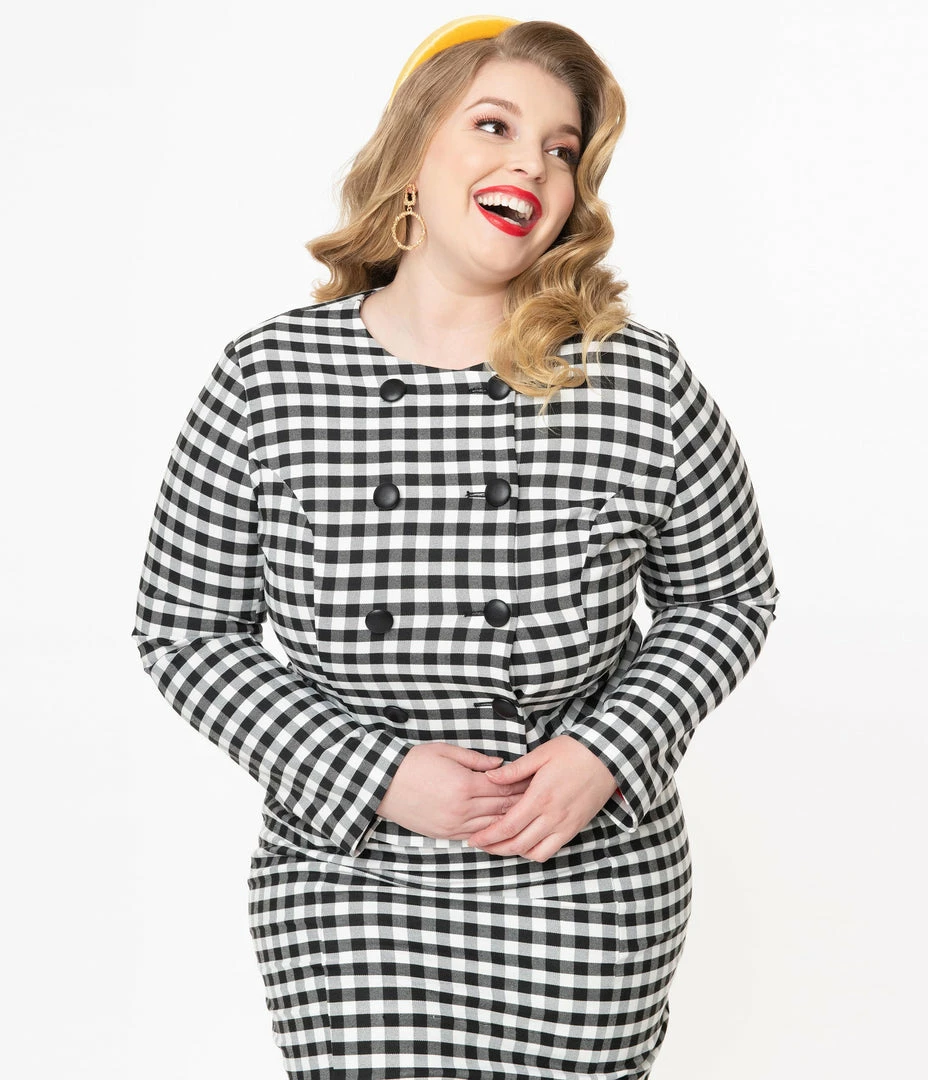 Discount โ๏ธ Collectif Plus Size Black & White Gingham Lorinna Jacket Sale ๐งจ