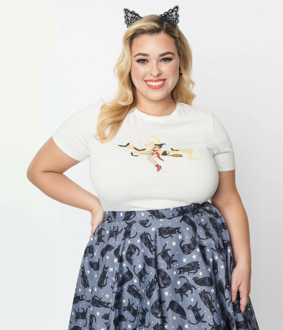 Discount ⭐ Collectif Plus Size Broomstick Witch Fitted Graphic Tee 🛒