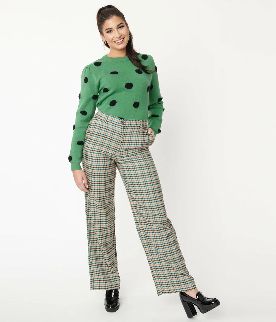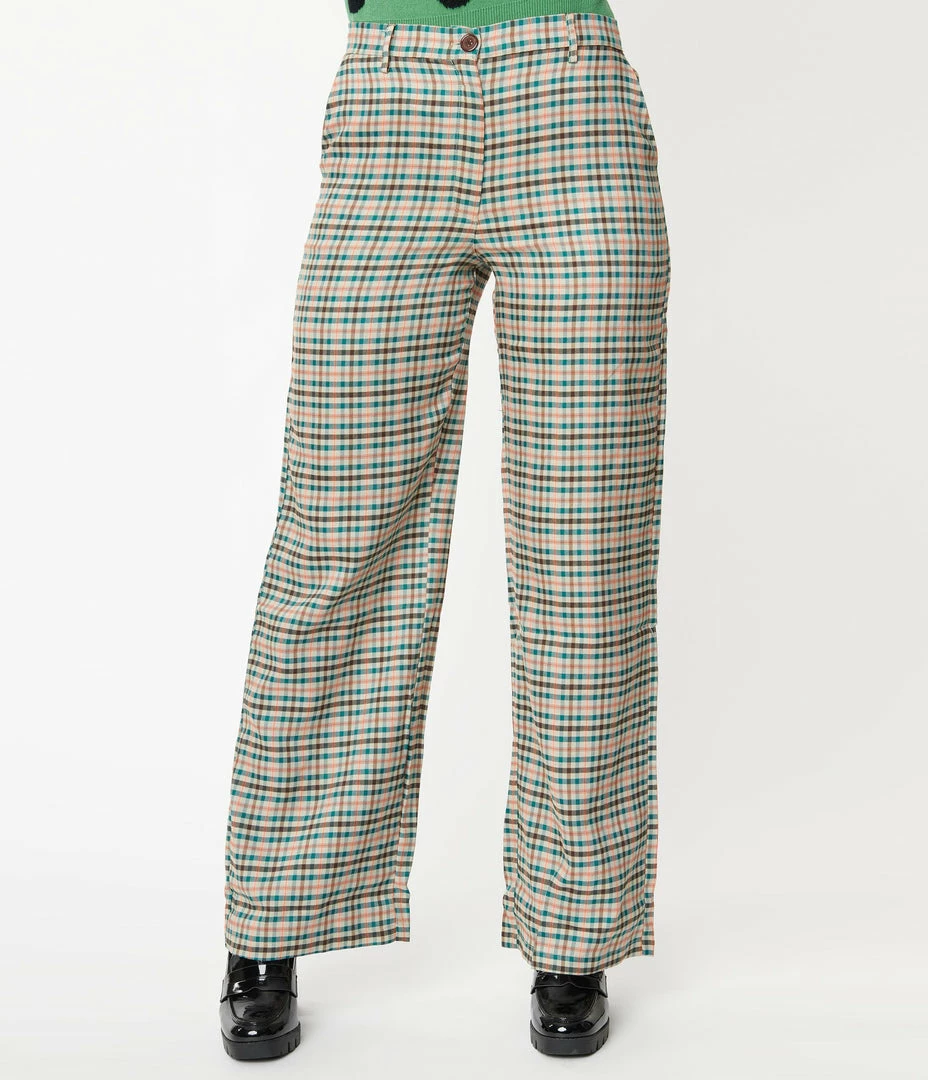 Can’t stop you now, dames! These adorable pants are crafted in a soft woven fabric and boast a fun olive, brown, teal, and orange gingham pattern throughout. The banned waist is nipped in with a front zipper and button while the straight leg silhouette falls to your ankles. Complete with side pockets for modern function!