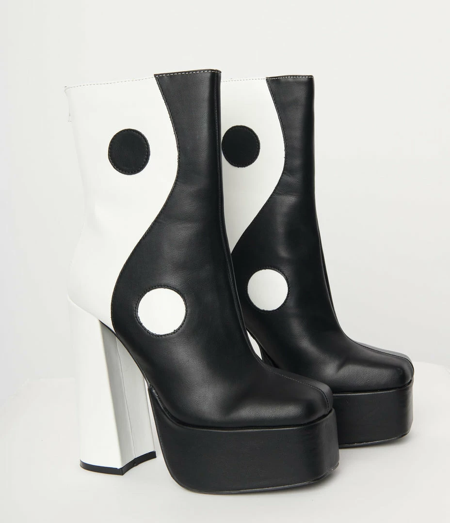 Best deal 👍 Daisy Street (Babel Fair) 👟 Shoes Black & White Yin Yang Platform 🥾 Boots 😀