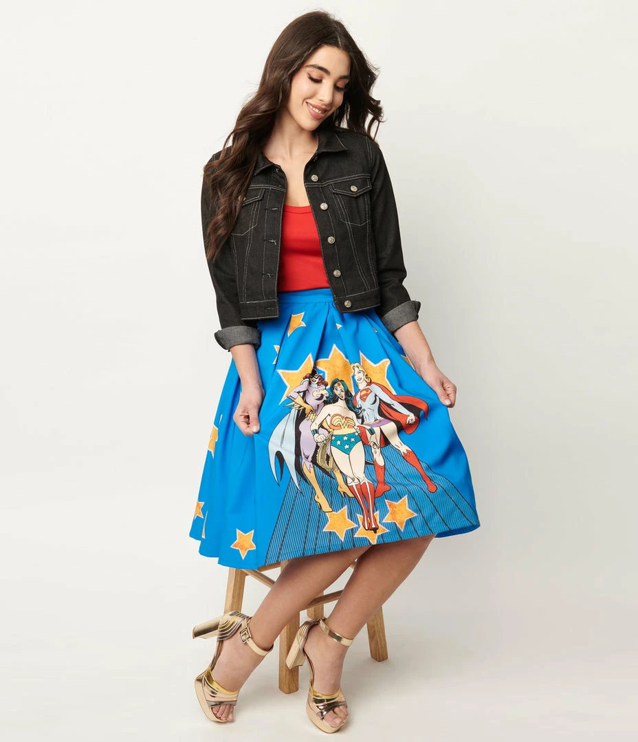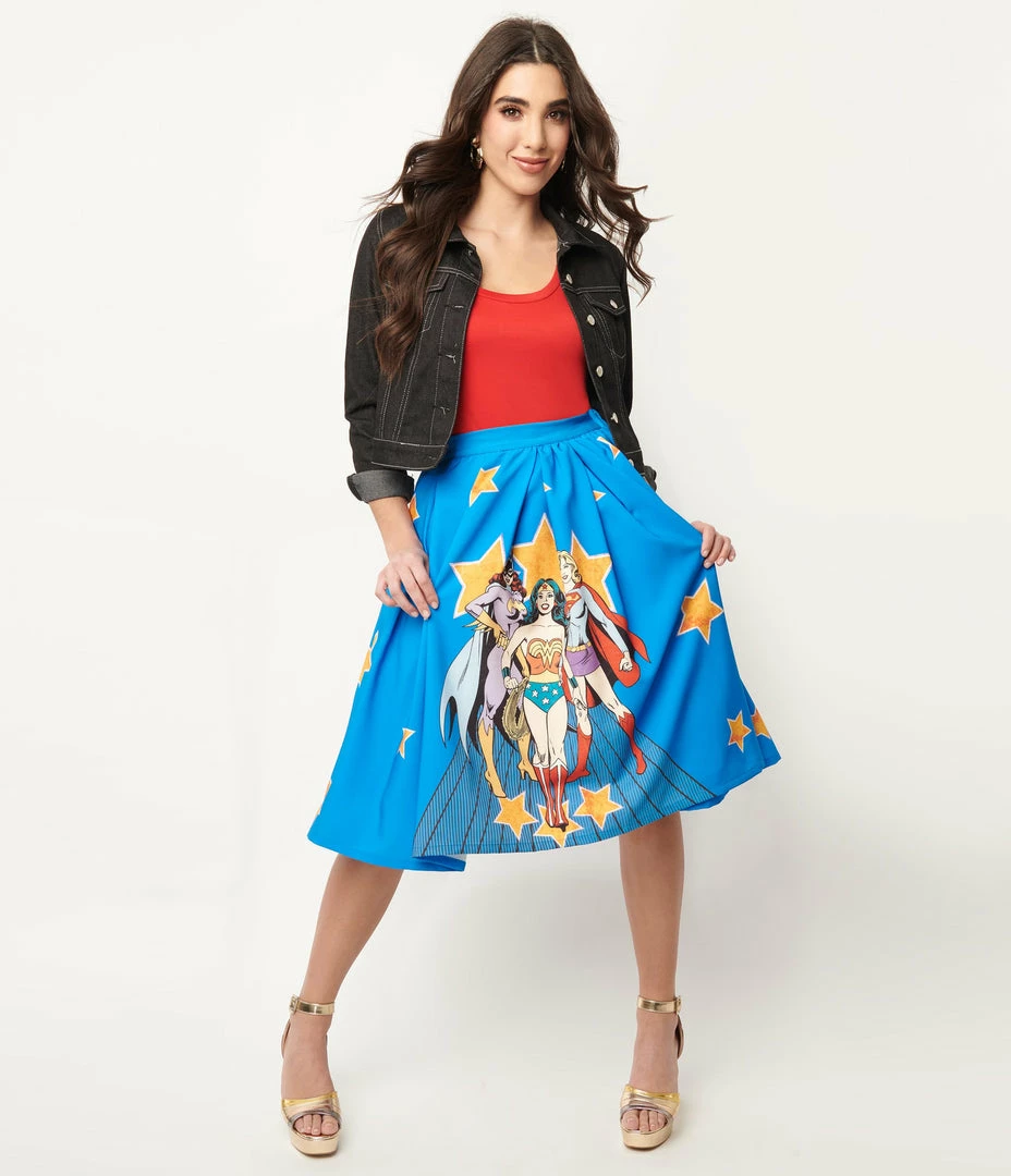 Outlet 🔥 DC Comics X Unique Vintage 👩 Women Of DC Swing 👗 Skirt Fan Flair 💯