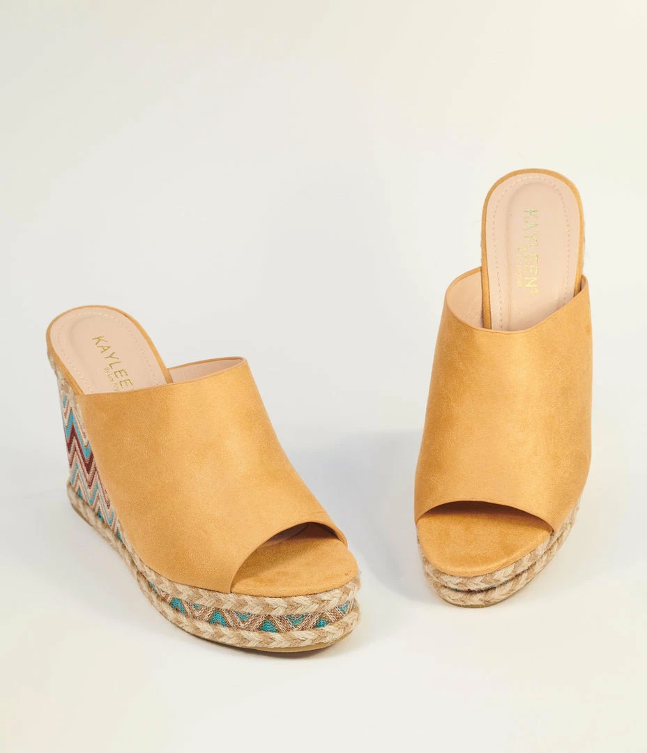 Coupon 💯 DDK FOOTWEAR, INC Tan Suede & Multicolor Chevron Wedges 😀