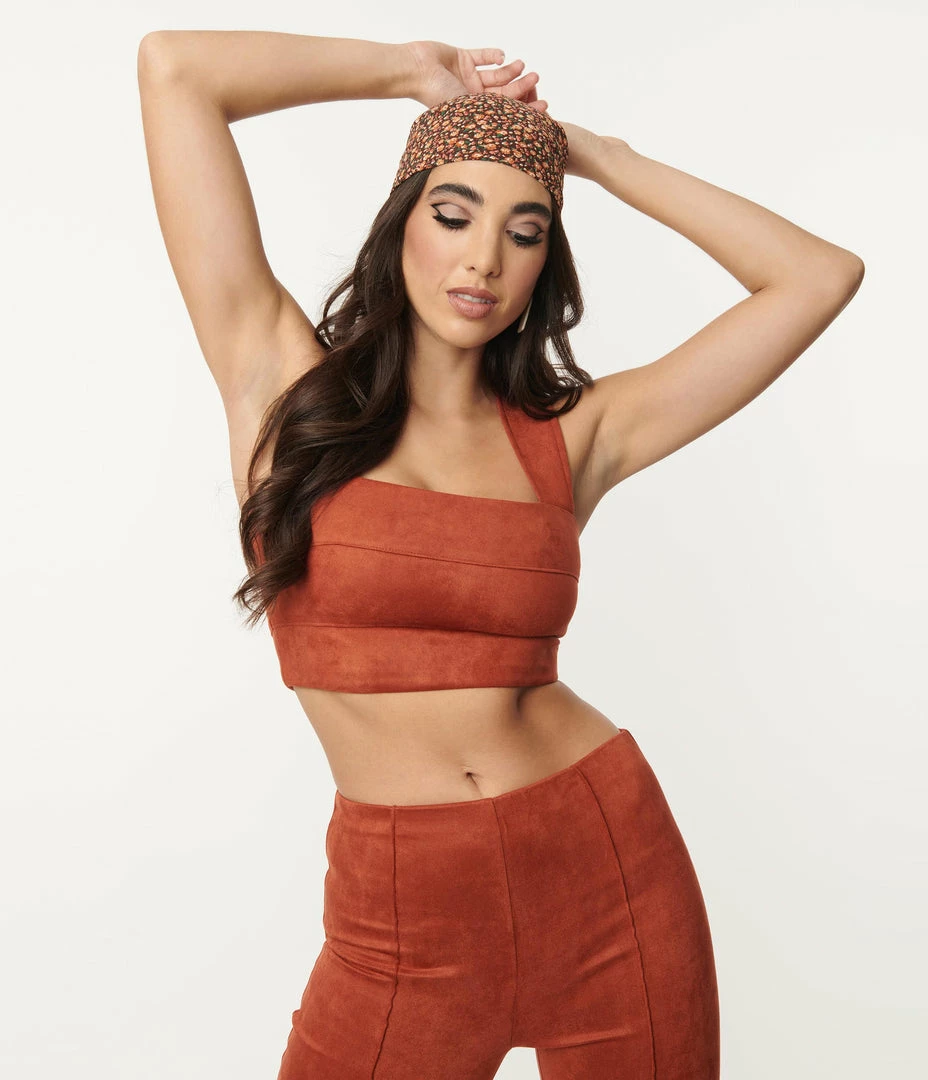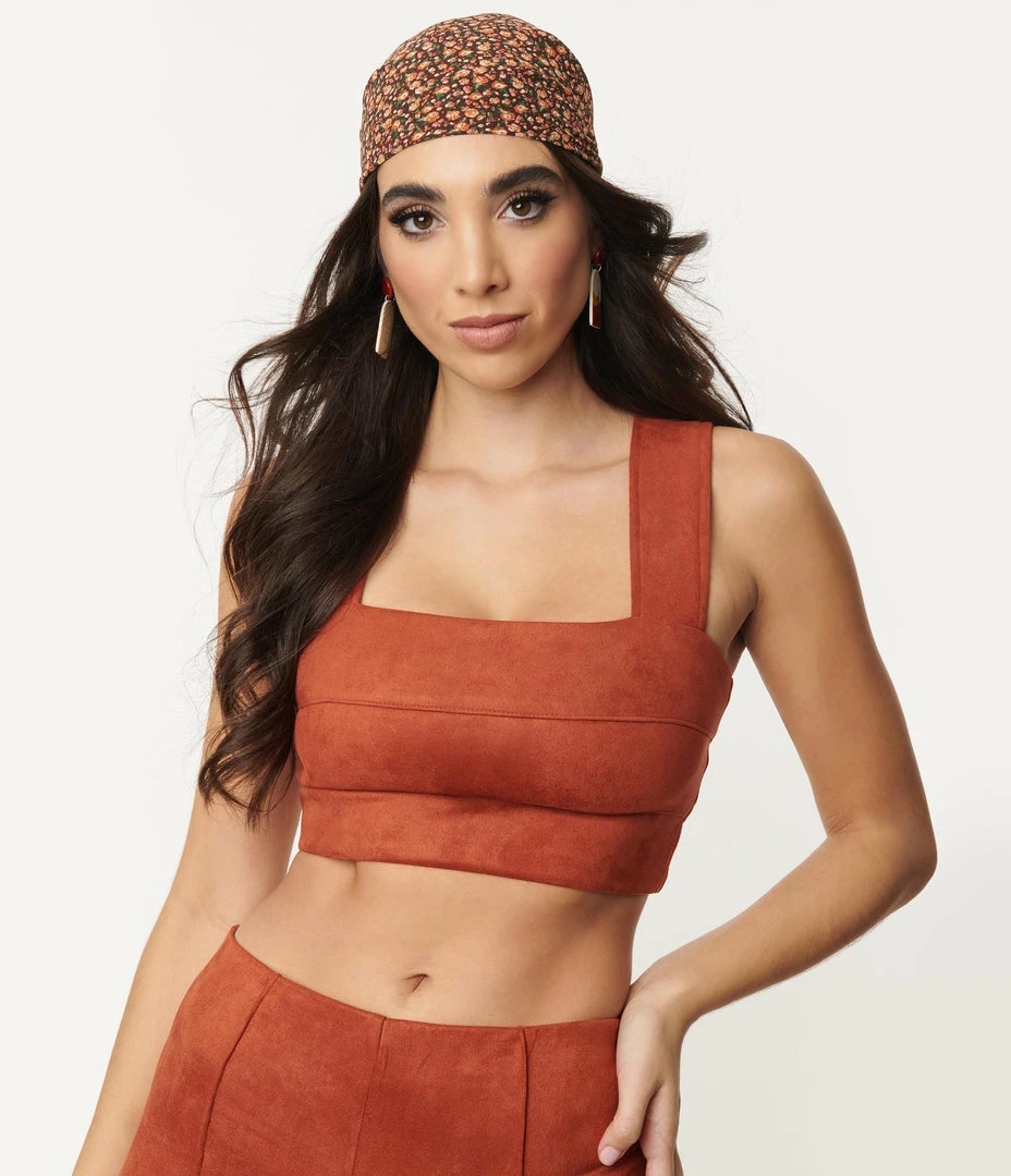 Discount 🎁 Dee Elly Sale Rust Orange Suede Crop Top ⌛