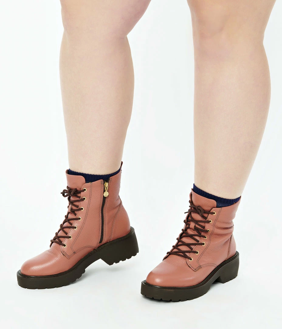 Start your look with a good base, dolls! These steady boots from Chelsea Crew are crafted in a fabulous mauve leather and features a 1 inch black tread and 2 inch heel for sturdy frolics. The lace up vamp and side zipper secure these eye-catching kicks!