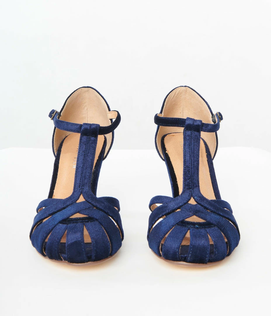 Outlet ✔️ Demfon International (Chelsea Crew) Chelsea Crew Navy Velvet Sergi T-Strap Pumps 🤩