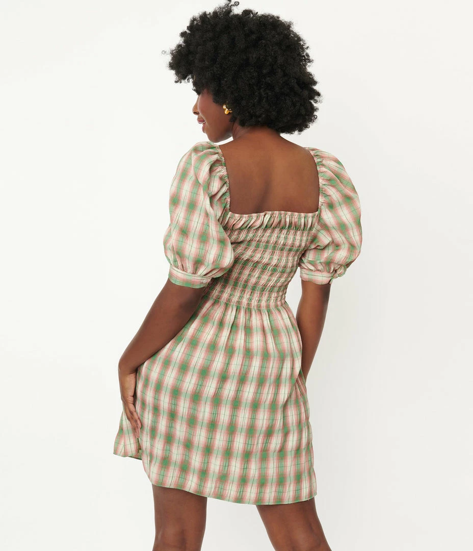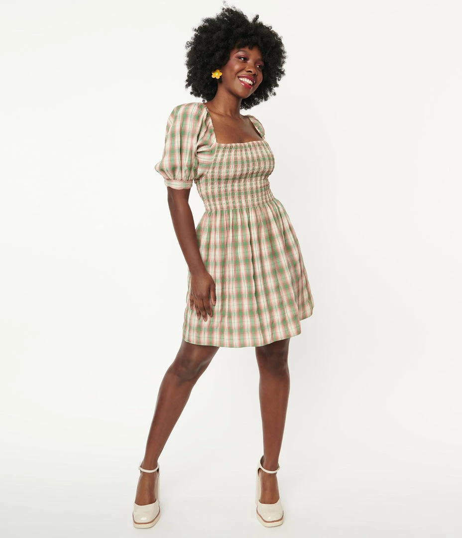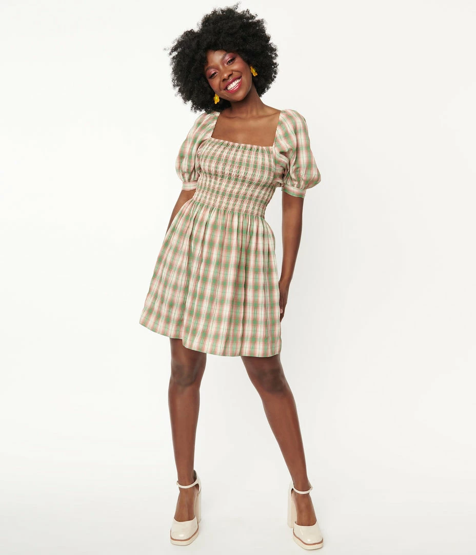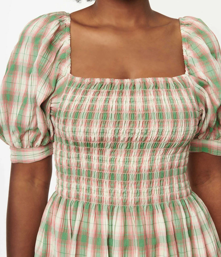 Wholesale ๐คฉ Dessin Studio Green & Pink Plaid Smocked Babydoll ๐ Dress Sale ๐