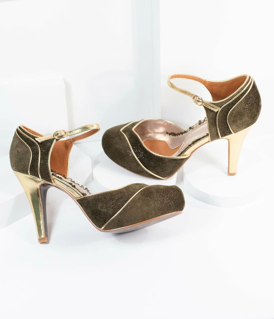Wholesale ⌛ Ellie Shoes Bettie Page Olive Green Suede & Gold Ruby 👠 Heels 🥰