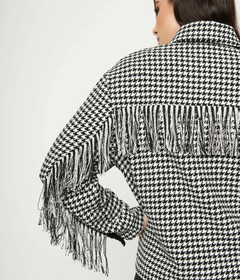Budget 🥰 Ellison Black & White Houndstooth Fringe Jacket 🥰