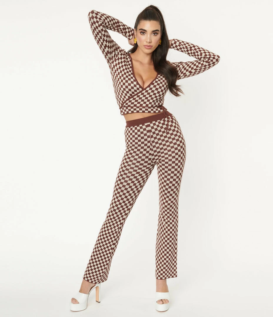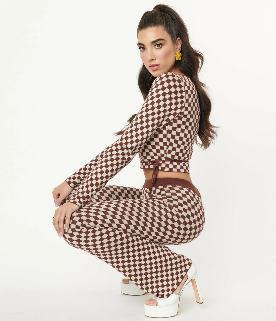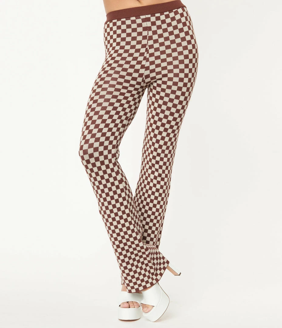 No need to hibernate, darling! Snuggle into these pants and frolic through the chilly breezes, crafted in a soft knit blend that dazzles with a brown and taupe checkered pattern throughout. The elastic banded waist cinched your feminine form as the legs drops into a fabulous flare!