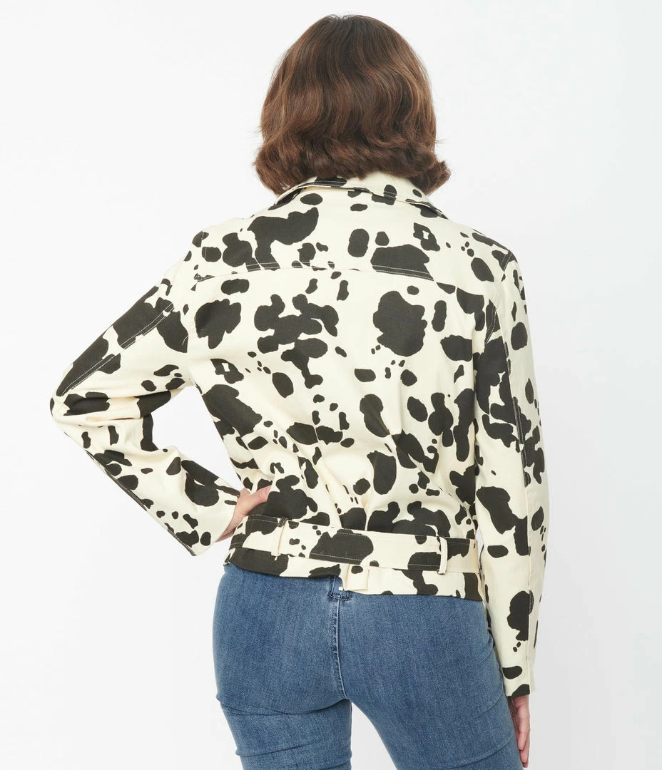 Flash Sale 💯 Emory Park Cream & Black Cow Print Denim Moto Jacket ⭐