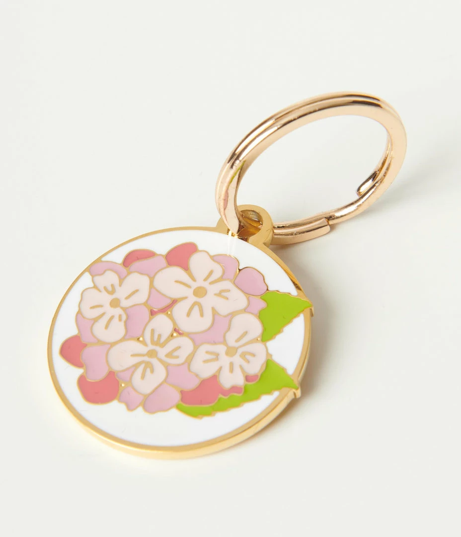 A bountiful bloom! This adorable charm can be paired with your pet’s collar for a sweet additional accent. Boasting a pink hydrangea floral and set in hard enamel, secure this cutie with the keyring!