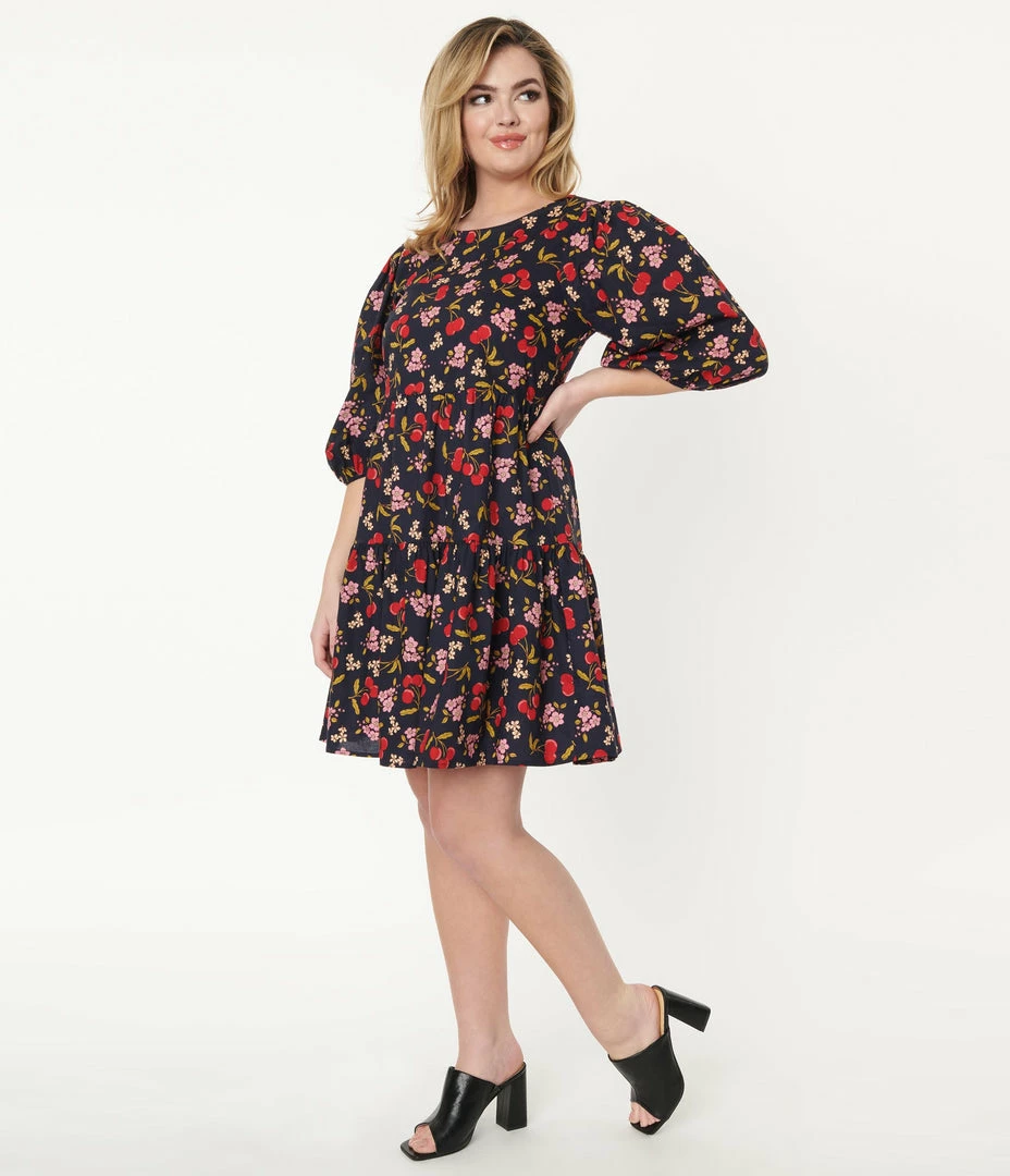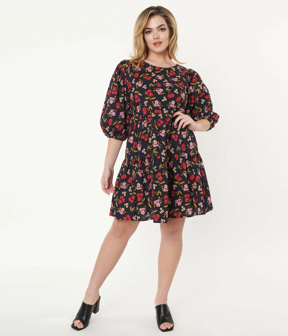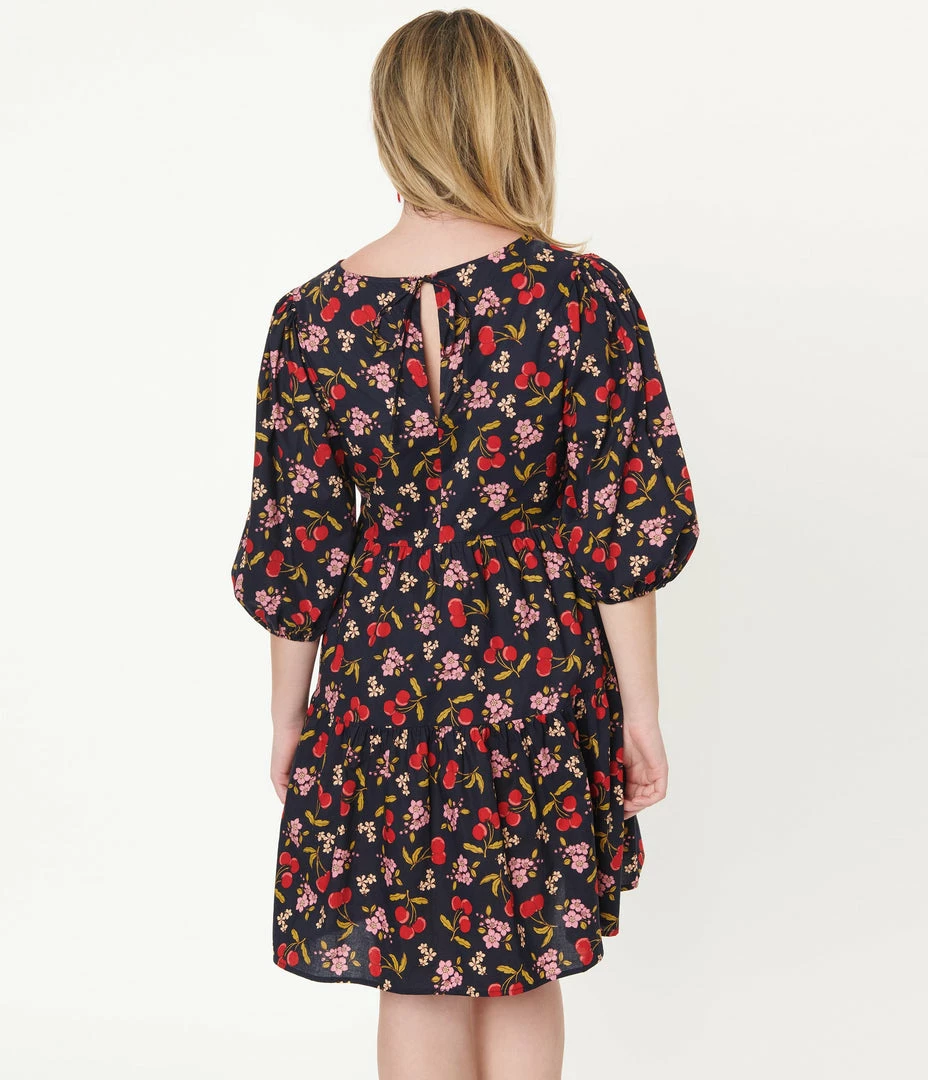 Cheap ๐ Factory X (Princess Highway) Navy & Cherry Print Babydoll ๐ Dress Sale ๐