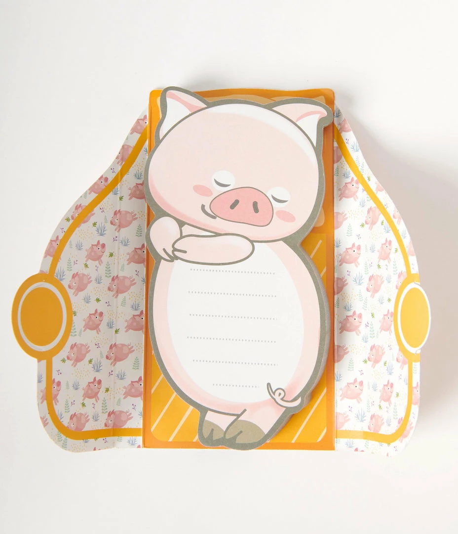 Go hog wild jotting down your notes on these little cuties, featuring a sweet piggy taking a nap in their yellow edged blanket!