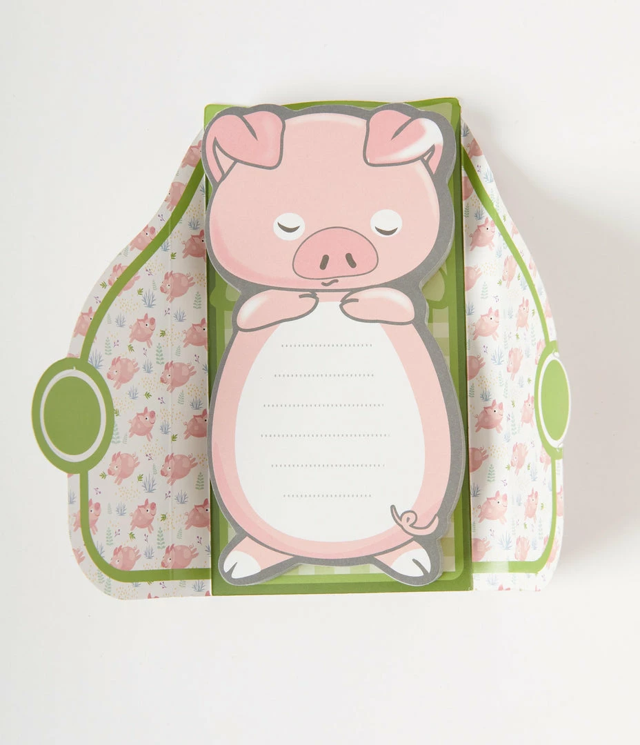 Go hog wild jotting down your notes on these little cuties, featuring a sweet piggy taking a nap in their green edged blanket!