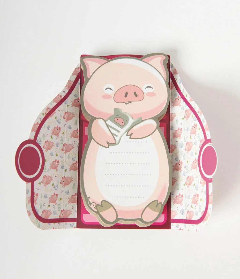 Go hog wild jotting down your notes on these little cuties, featuring a sweet piggy taking a nap in their pink edged blanket!
