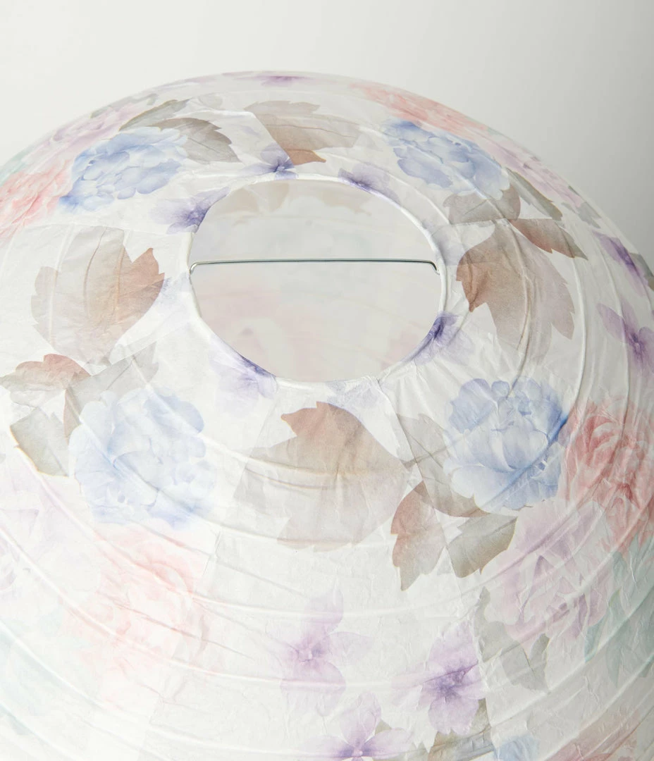 Accent your vintage decor with this sweet hanging lantern! Crafted wire wrapped paper and boasting a sweet pastel pastel floral print in pink, green, blue, and purple. Complete with removable expander!