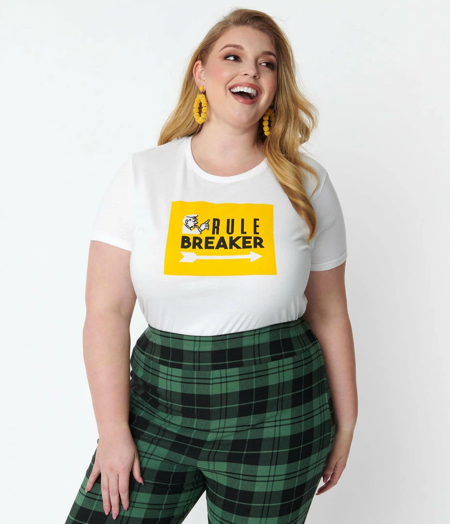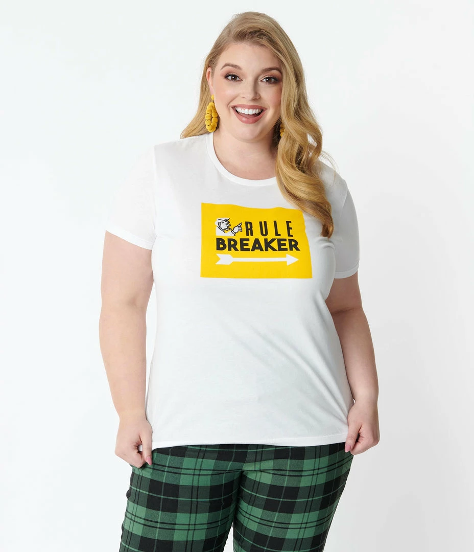 But it’s a house rule, darling! This cheeky women’s tee from Unique Vintage is a fabulous collaboration with Hasbro in homage to the iconic Monopoly Game. Crafted in lightweight white cotton, this fitted separate features a yellow graphic print of whistleblower officer and an arrow with the words, ‘Rule Breaker’. Complete with a crew neckline and short sleeves, hope you held onto your Get Out Of Jail Free card!